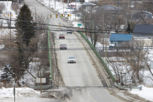 Cars drive across the Aroostook River Bridge on Feb. 23. The bridge serves as a vital connector to the eastern half of Caribou and neighboring Fort Fairfield. (Cameron Levasseur | The County)